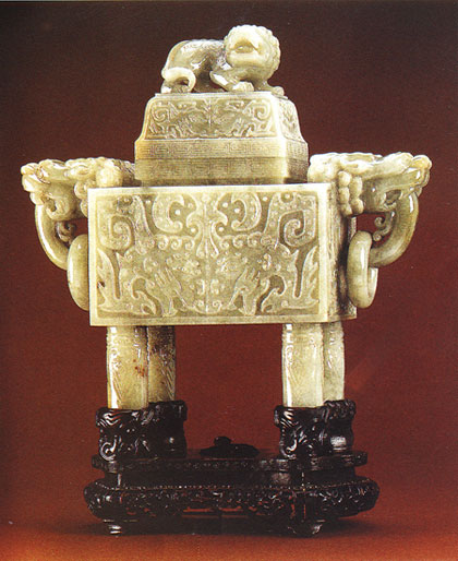 翠玉饕餮纹带盖方炉,晚清,香港佳士得2004年春季拍卖会拍品,估价500,000港元-700,000港元