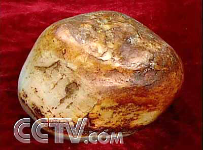藏品来历:我这次到《鉴宝》节目非常高兴,当初这块籽料得来的也不容易,1992年我爱人生病,我还在上海学习,我特地回安徽带着妻子去了新疆,在乌鲁木齐的市场里看到这块玉石,当时经过讨价还价用8000元买下了,只剩两千块钱了。