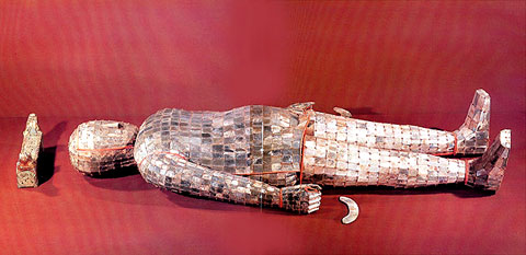 ‘汉承秦制’,在玉雕上也构筑了中国玉雕史上一座光辉灿烂的丰碑,为唐宋玉雕艺术的繁荣打下了坚固的基础。汉代帝王以为可保尸骨不朽的殓葬玉也有了空前发展,其蝉和豚玉质优越,作工简练,寥寥数刀便勾勒出蝉和豚的形象,其神态栩栩如生,令人爱不释手,藏家称其为‘汉八刀’。总之,秦汉时期是中国时作玉和殓尸玉全面发展的时代。