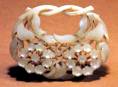 元、明、清三代(1271-1911年)都是定都北京的统一王朝。元朝玉器艺术仍在形神兼备的创作道路上前进,仅在作工上较为粗放。明代中期玉器渐脱离元朝作工而出现忽视生活的拟古主义倾向,商品生产盛行,粗制滥造成风,产生了狂放无法、随意碾琢的扭曲现象。
