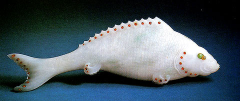 乾隆蕃作翡翠嵌玉石鱼形盒